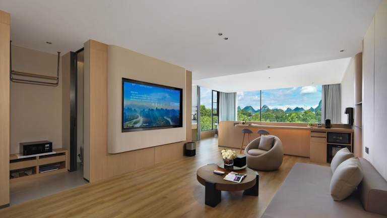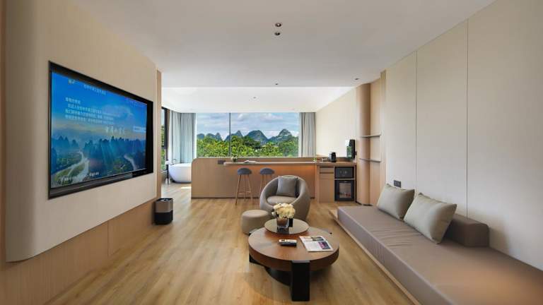 Das Hotel befindet sich im Stadtzentrum von Guilin, nur 1 Gehminute vom Ronghu-See und 2 Gehminuten von der alten Stadtmauer von Gunanmen entfernt. Zahlreiche malerische Sehenswürdigkeiten, darunter der zentrale Platz und die Fußgängerzone Zhengyang, sind in wenigen Gehminuten erreichbar. Der Bahnhof und der Busbahnhof Guilin sind in einer 15-minütigen Autofahrt zu erreichen, während der Flughafen Guilin Liangjiang eine 45-minütige Fahrt entfernt ist.