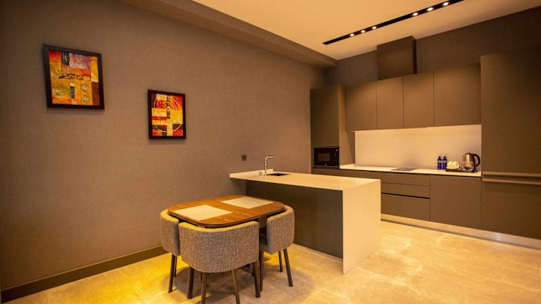 Die Unterkunft bietet ausgewählte Zimmer, die mit einer Küche ausgestattet sind, einschließlich Kühlschrank, Mikrowelle und Minibar.