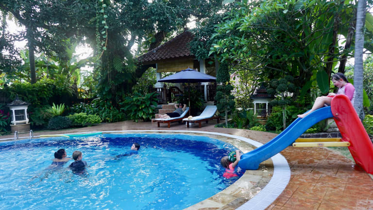Gunung Paradis Retreat bietet eine einladende Umgebung mit einem Außenpool, einer Terrasse und einem weitläufigen Garten. Die Unterkunft ermöglicht eine komfortable Ankunft mit flexiblem Check-in und Check-out und stellt sicher, dass die Gäste während ihres Aufenthalts bestens betreut werden.