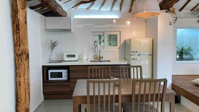 In der Villa GuReung YeonGa können Sie Ihre eigenen Mahlzeiten zubereiten, da eine voll ausgestattete Küche vorhanden ist. In der näheren Umgebung finden Sie auch Restaurants und Cafés, in denen Sie lokale Spezialitäten und internationale Gerichte genießen können.