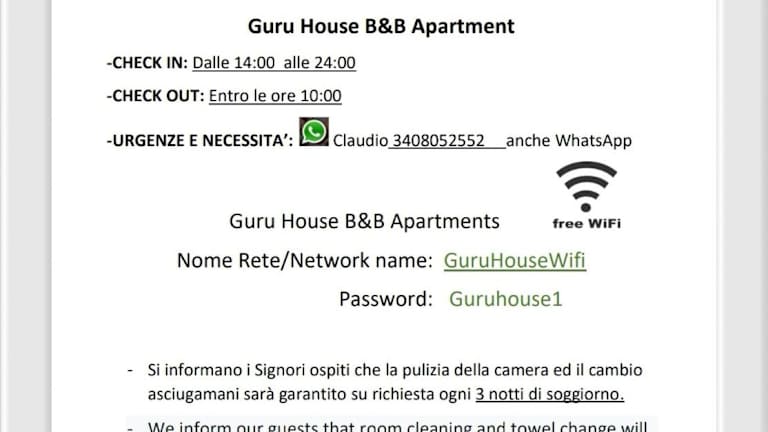 Guru House B&B Apartments ist eine Unterkunft, die Übernachtungsmöglichkeiten mit kostenlosem WLAN und Klimaanlage bietet. Die Unterkunft ist von einem Garten und einer Terrasse umgeben und bietet direkten Zugang zur Veranda oder zum Patio. Die Ferienwohnung stellt einen Flachbild-TV zur Verfügung und bietet eine moderne Ausstattung.