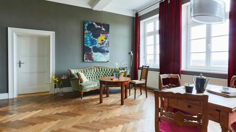 Das Gut Pohnstorf liegt in Alt Sührkow, etwa 60 km von Rostock entfernt. Die idyllische Lage bietet Ihnen die Möglichkeit, die Natur zu erkunden und die Ruhe zu genießen. In der Nähe können Sie wandern gehen und die schöne Umgebung erkunden. Wenn Sie Ausflüge planen möchten, ist Berlin etwa 190 km entfernt und Schwerin erreichen Sie nach 101 km. Der Flughafen Rostock-Laage ist etwa 46 km vom Gut Pohnstorf entfernt.