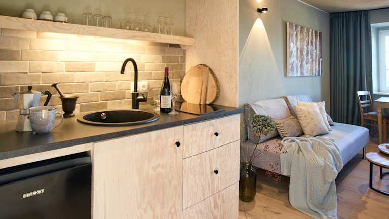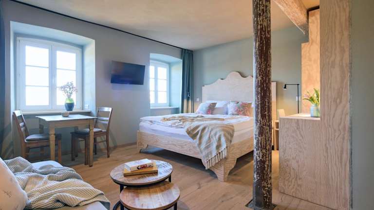 Die Unterkünfte im Gut Pohnstorf sind komfortabel und gemütlich eingerichtet. Jede Unterkunft verfügt über Parkettboden, eine voll ausgestattete Küchenzeile mit Kühlschrank und Essbereich sowie ein eigenes Badezimmer mit Dusche. Zur Ausstattung gehören auch Sat-TV, kostenfreies WLAN und gegen Aufpreis können Handtücher und Bettwäsche zur Verfügung gestellt werden.