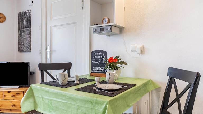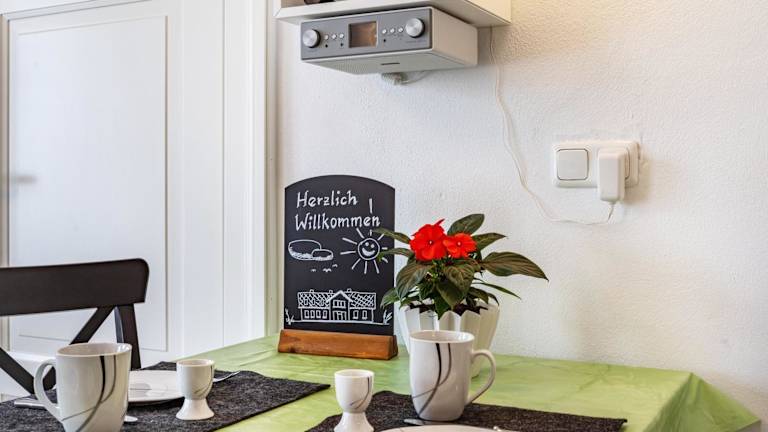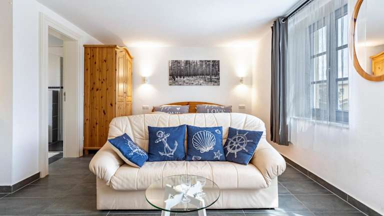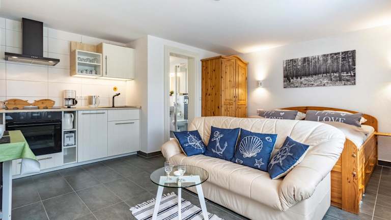 Die Ferienwohnung verfügt über ein Schlafzimmer, eine Küche, die mit einem Kühlschrank und einem Geschirrspüler ausgestattet ist, sowie ein Badezimmer mit Dusche und kostenlosen Pflegeprodukten. Zudem stehen Handtücher und Bettwäsche zur Verfügung. Eine Waschmaschine ist ebenfalls vorhanden.