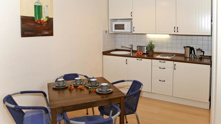 Die Ferienwohnung verfügt über 1 Schlafzimmer und ein Wohnzimmer. Zudem sind ein Badezimmer mit Dusche sowie Handtücher und Bettwäsche, die gegen Aufpreis zur Verfügung stehen, vorhanden.