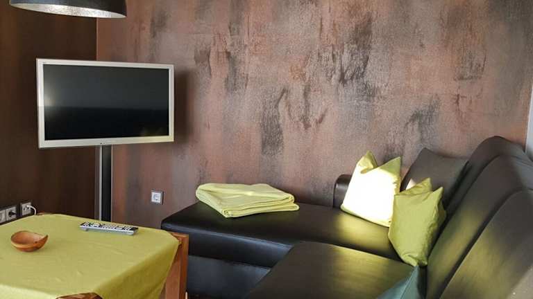 Die Ferienwohnung verfügt über 2 Schlafzimmer, ein Wohnzimmer sowie eine voll ausgestattete Küche mit Geschirrspüler und Essbereich. Zudem gibt es ein Badezimmer. Zur Unterhaltung stehen ein TV mit Kabelkanälen und ein CD-Player zur Verfügung.