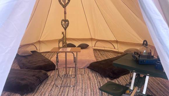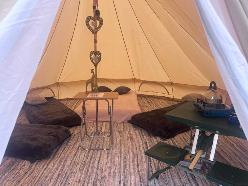Die Unterkünfte im Syds Corner bell tent bieten einen komfortablen Sitz- und Essbereich, wo Sie entspannen und Ihre Mahlzeiten genießen können. Von einigen Zelten aus haben Sie einen schönen Blick auf den Garten. Jedes Zelt ist individuell gestaltet und bietet eine einzigartige Erfahrung für Ihren Aufenthalt.