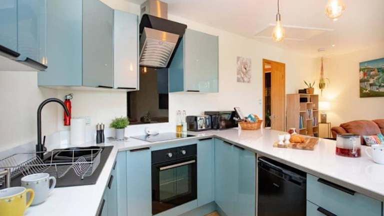 Die Unterkunft verfügt über ein Schlafzimmer und bietet eine Küchenzeile, die mit einem Kühlschrank und einem Geschirrspüler ausgestattet ist. Des Weiteren stehen ein Flachbild-TV, ein Sitzbereich und ein Badezimmer mit Dusche zur Verfügung.