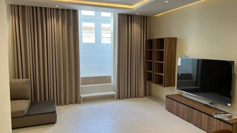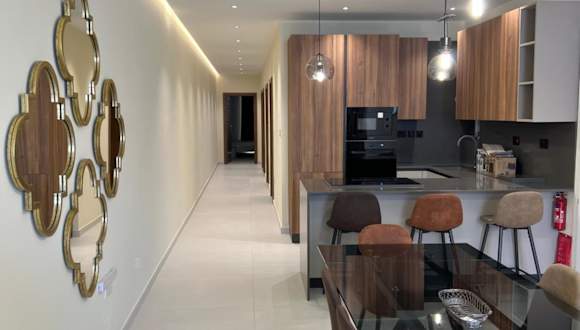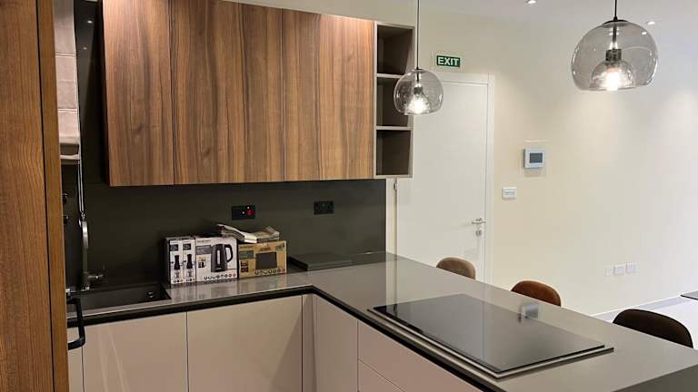 Die Ferienwohnung umfasst drei Schlafzimmer, ein Wohnzimmer und eine voll ausgestattete Küche mit Kühlschrank und Wasserkocher. Es gibt zwei Badezimmer mit Dusche und kostenlosen Pflegeprodukten. Handtücher und Bettwäsche werden bereitgestellt. Zu den weiteren Annehmlichkeiten zählen WLAN in allen Bereichen und ein Aufzug.