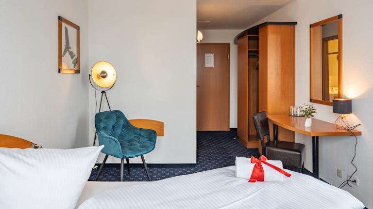 Das H&S Hotel Belmondo Leipzig Airport bietet eine ruhige Lage mit 105 Zimmern, die über einen Aufzug und eine Rezeption erreichbar sind. Die Einrichtung umfasst eine Gepäckaufbewahrung, einen Safe und einen Tourdesk für Ausflüge. Ein TV-Raum und eine Bibliothek stehen zur Verfügung. Die Unterbringung ist behindertengerecht gestaltet. Für Autos gibt es gebührenfreie Parkmöglichkeiten. Ein Business-Center, ein Wäscheservice, Zimmerservice und ein kostenloser Fahrradverleih sind ebenfalls Bestandteil des Angebots.