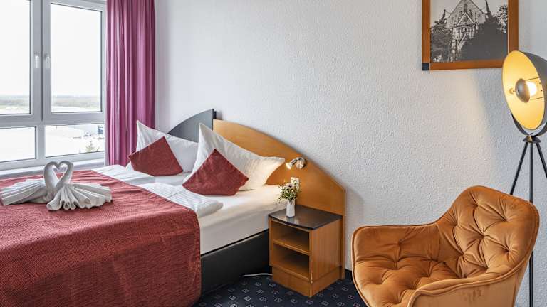 Das Hotel befindet sich in Wiedemar, nur 15 Fahrminuten von der Messe Leipzig entfernt. Der nächste Flughafen ist Leipzig (LEJ), der ebenfalls in etwa 15 Minuten mit dem Auto erreichbar ist. Die Anbindung zur Autobahn A9 ist in nur 3 Fahrminuten erreicht.
