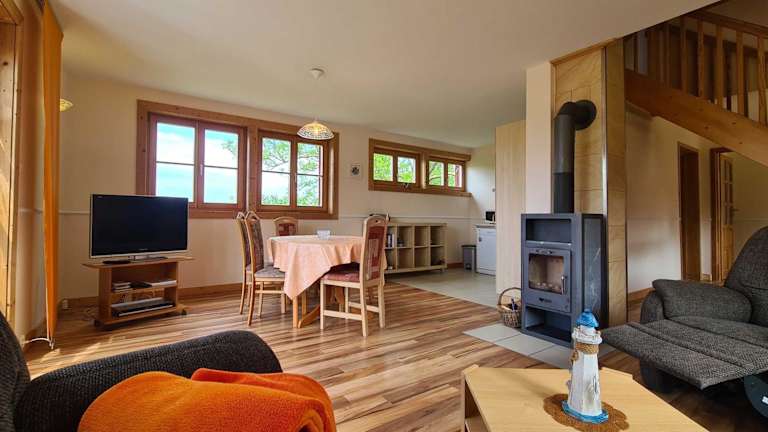 Das Chalet verfügt über einen Satelliten Flachbild-TV sowie ein Badezimmer mit Dusche und Haartrockner.