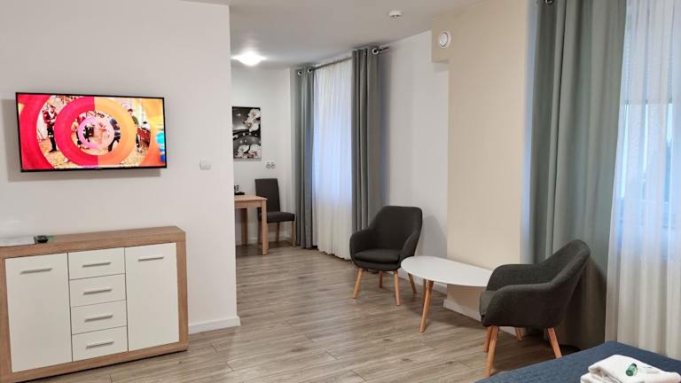 Das H2U LUX Hostel Dla Ciebie befindet sich in Mława und bietet eine günstige Lage für Reisende, die die Stadt und ihre Umgebung erkunden möchten. Die Unterkunft ist gut erreichbar und bietet eine gute Anbindung an öffentliche Verkehrsmittel. In der Nähe finden Sie verschiedene Restaurants, Geschäfte und Sehenswürdigkeiten, die Sie besuchen können.