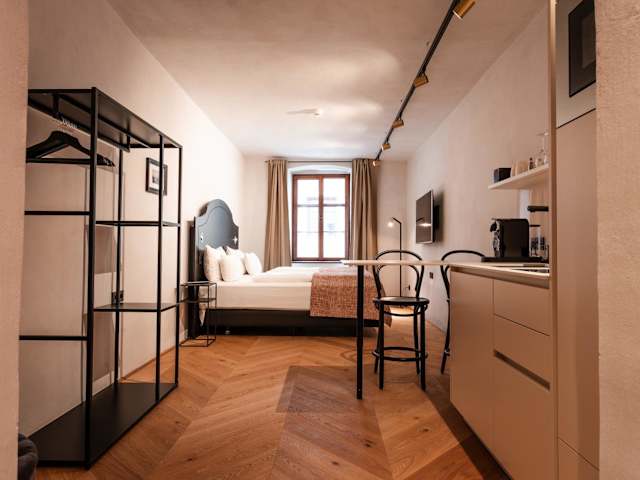 H5 Grauer Bär Studios & More bietet moderne Unterkünfte zur Selbstversorgung mit kostenlosem WLAN. Die Studios sind mit Parkettböden ausgestattet und verfügen über einen Sitzbereich sowie eine Küchenzeile.