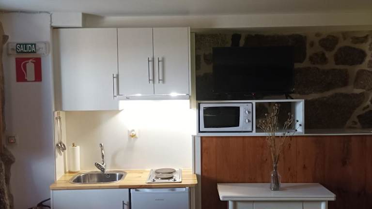 Das Apartment im Habitación do Xurés verfügt über ein gemütliches Schlafzimmer, in dem Sie sich nach einem erlebnisreichen Tag entspannen können. Die gut ausgestattete Küche bietet Ihnen die Möglichkeit, Ihre eigenen Mahlzeiten zuzubereiten. Im modernen Badezimmer finden Sie eine Dusche vor. Das Apartment verfügt auch über einen Flachbild-TV und einen komfortablen Sitzbereich.
