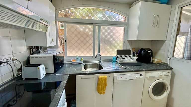 In der komplett ausgestatteten Küche sind ein Kühlschrank, ein Geschirrspüler, ein Ofen sowie eine Kaffeemaschine vorhanden, sodass die Selbstverpflegung möglich ist.