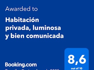Die Unterkunft Habitación privada, luminosa y bien comunicada bietet eine private, helle Übernachtungsmöglichkeit. Es handelt sich um eine Nichtraucherunterkunft, die von einem privaten Gastgeber geführt wird.
