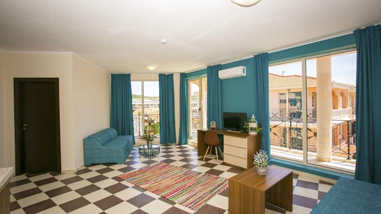 Das Hacienda Beach Apartments in Sozopol ist der perfekte Ort für einen entspannten Strandurlaub. Nur wenige Schritte vom Gold Fish Strand entfernt, bietet das Hotel einen kostenfreien Außenpool, ein Buffetrestaurant und klimatisierte Unterkünfte. Genießen Sie den Komfort eines eigenen Wohnbereichs und entspannen Sie auf dem Balkon. Das Hotel verfügt auch über eine Poolbar und einen Garten mit einem Kinderspielplatz. Das Zentrum von Sozopol mit einer großen Auswahl an Restaurants, Geschäften, Cafés und Bars ist nur 3 km entfernt.