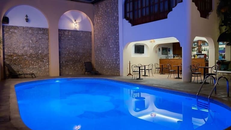 Verbringen Sie Ihren Aufenthalt im Hotel Hacienda de los Ángeles by Rotamundos und genießen Sie die ideale Lage nur zwei Blocks vom Central Park in Comitán de Domínguez entfernt. Das Hotel bietet einen Innenpool und einen zentralen Innenhof mit einem Springbrunnen. Kostenloses WLAN steht im gesamten Hotel zur Verfügung. Die Zimmer sind klassisch eingerichtet und verfügen über einen Deckenventilator, Kabel-TV und ein eigenes Bad. Kostenfreie Pflegeprodukte und Mineralwasser sind ebenfalls vorhanden. Im Restaurant des Hotels können Sie authentische Gerichte aus der Region Chiapas probieren. In der unmittelbaren Umgebung des Hotels finden Sie auch eine Vielzahl von Bars, Restaurants und Geschäften. Kostenlose Parkplätze stehen in der Nähe des Hotels zur Verfügung. Der Nationalpark Lagunas de Montebello mit seinen wunderschönen Seen ist nur eine 40-minütige Fahrt entfernt und die Stadt Tuxtla Gutierrez erreichen Sie nach einer zweistündigen Autofahrt.