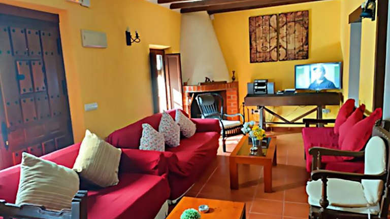 Verbringen Sie Ihren Aufenthalt im Casa Rural El Cencerro in Villamanrique de Tajo und genießen Sie eine komfortable Unterkunft mit Zugang zu einem saisonalen Außenpool, einer Terrasse und einer Gemeinschaftsküche. Erkunden Sie die schöne Umgebung und nehmen Sie an Aktivitäten wie Radfahren und Tennis teil. Der Ferienhof bietet geräumige Zimmer, eine voll ausgestattete Küche und moderne Badezimmer. Entspannen Sie im Garten oder in der Gemeinschaftslounge nach einem ereignisreichen Tag. Die Lage des Ferienhofs ermöglicht es Ihnen, die Plaza Mayor Chinchon und die Burg von Chinchon leicht zu erreichen.