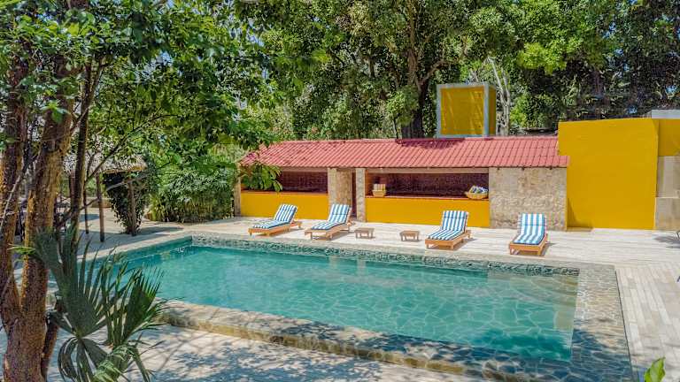 Das Hotel Hacienda San Miguel Yucatan in Valladolid ist ein charmantes historisches Gebäude, das nur eine kurze Fahrt vom Stadtzentrum entfernt liegt. Es bietet einen schönen Außenpool und eine malerische Umgebung mit üppigen Gärten und dem umliegenden Dschungel. Die Zimmer und Villen bieten einen herrlichen Blick auf den Garten und sind mit Klimaanlage und eigenem Bad ausgestattet. Die Lage des Hotels ermöglicht es den Gästen, die Sehenswürdigkeiten von Valladolid, wie das Cenote Dzitnup und die archäologische Stätte von Ek 'Balam, in kurzer Zeit zu erreichen.