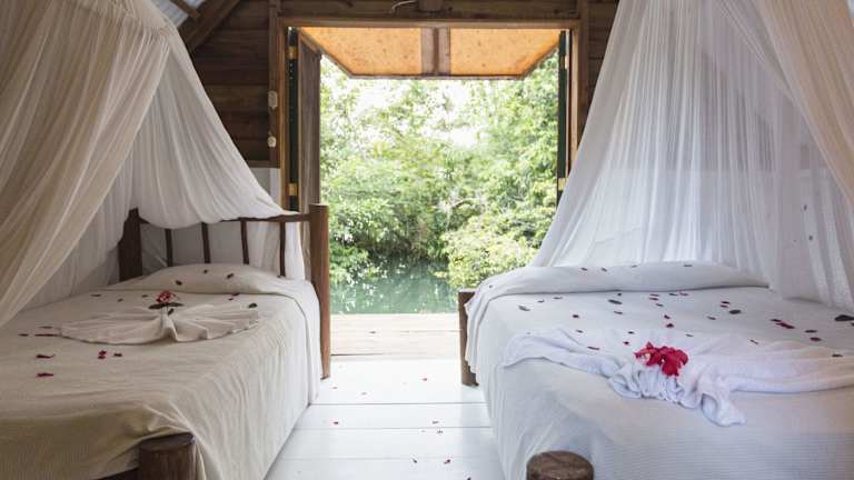 Die Zimmer im Hotel Hacienda Tijax Jungle Lodge sind komfortabel und klimatisiert. Jedes Zimmer verfügt über ein eigenes Bad und bietet einen gemütlichen Rückzugsort nach einem ereignisreichen Tag in der Natur.