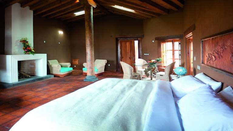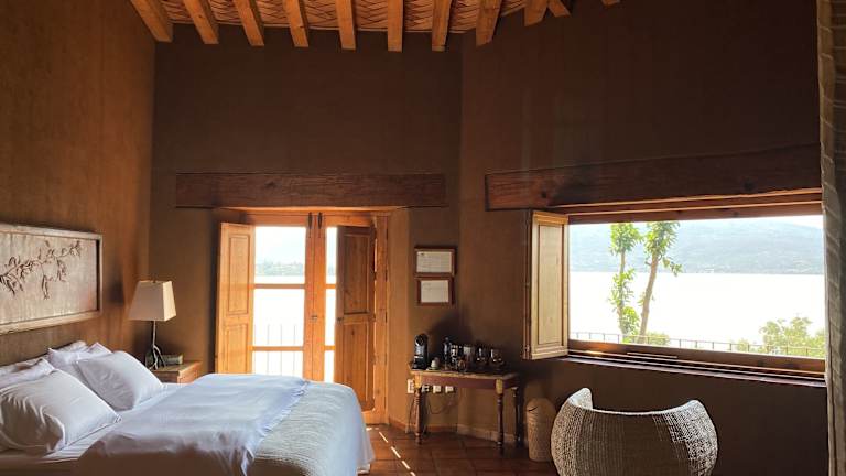 Die Suiten im Hacienda Ucazanaztacua sind geräumig und individuell gestaltet. Jede Suite verfügt über einen Balkon mit Blick auf den Pátzcuaro-See und die Inseln. Ein großer Sitzbereich mit Kamin und eine Auswahl an Kissen sind ebenfalls vorhanden. Allergikerfreundliche Zimmer sind verfügbar.