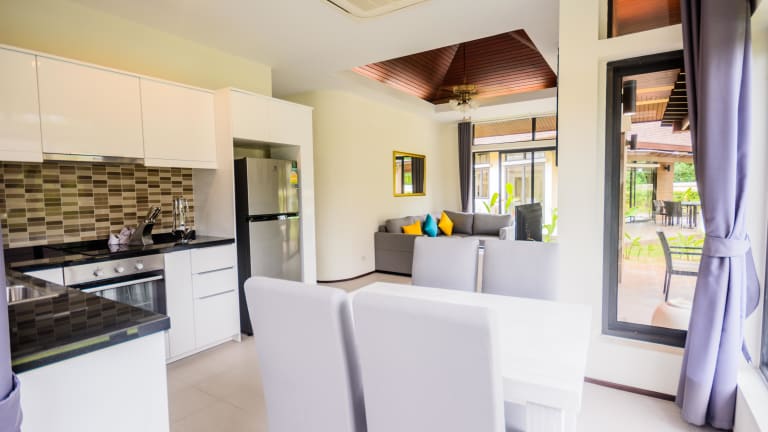 Unsere ruhige und exklusive Poolvilla befindet sich nur 50 m vom Had Yao Beach entfernt mit direktem Zugang zum Pool und einem großen Gemeinschaftspool unter 3 weiteren Villen. Die Villa befindet sich in einer exklusiven Gegend von Krabi, wo sich nur wenige andere Villen und Resorts befinden, die eine großartige Gelegenheit bieten, sich in einer ruhigen und friedlichen Umgebung auszuruhen und zu entspannen, ohne sich von großen Touristenmengen stören zu lassen. Die Villa selbst verfügt über 2 große Schlafzimmer für bis zu 4 Erwachsene. Die Villa bietet Platz für bis zu 2 weitere Kinder oder 1 Erwachsenen, die auf der Couch schlafen können. Kissen, Bettwäsche und Decken werden vor dem Check-in zur Verfügung gestellt. Die Gesamtaufteilung der Villa erstreckt sich über 80 qm. Meter, so gibt es viel Platz für die ganze Familie. Neben der Villa befindet sich ein großer Swimmingpool, der in 2 Bereiche unterteilt ist, 1 tiefergelegter Bereich für Erwachsene 1,4 m und ein 0,6 m großer Bereich für Kinder zum sicheren Spielen. Die Villa verfügt über alle modernen Annehmlichkeiten und ist perfekt für Familien oder Paare geeignet. Die Gäste haben vollen Zugang zu der Villa und den umliegenden Grundstücken sowie zu den öffentlichen Bereichen wie Pool und Strand. Wir stellen jedem Gast ein lokales Telefon zur Verfügung, mit dem Sie jederzeit das Team von Krabi Travel anrufen können. Die Organisation eines Taxis ist so einfach wie das Anrufen unseres Teams. Wir haben auch Motorräder vor Ort, wenn Sie diese bevorzugen, um in der Stadt herumzukommen und einen Ausweg zu machen, um zu erkunden, was Krabi zu bieten hat. Wenn Sie diese Option bevorzugen, informieren Sie uns bitte vor Ihrer Ankunft, damit wir sicherstellen können, dass die Schlüssel bei der Ankunft in der Villa sind. Jede Buchung wird von einem Vertreter des Krabi Travel Teams begrüßt, dieser Vertreter wird als Ihr Guide während Ihres Aufenthaltes bezeichnet, sie werden Sie durch die Villa geführt,um alle Ihre Fragen beantworten und Ihnen dann auch eine Karte von Krabi gezeigt und geben ihnen Tipps und Insider-Informationen über die Stadt und Sehenswürdigkeiten in Krabi.
