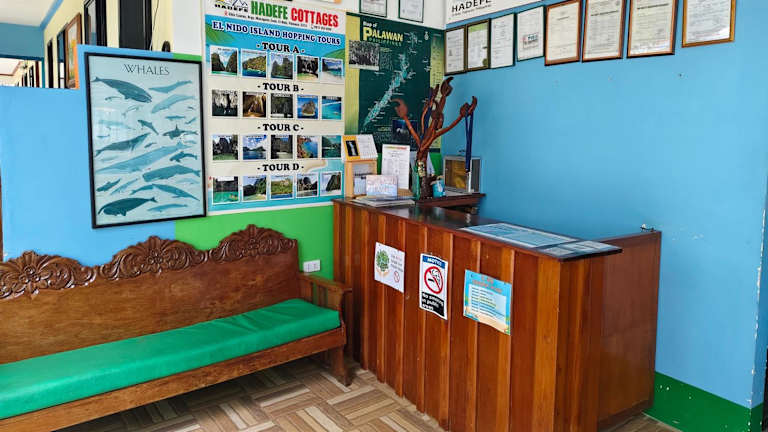 Das Hadefe Resort in El Nido ist der perfekte Ort für einen Strandurlaub. Nur wenige Schritte vom Caalan Beach entfernt, bietet es eine Reihe von Annehmlichkeiten wie einen Garten, eine Gemeinschaftslounge und eine Bar. Die klimatisierten Zimmer sind komfortabel eingerichtet und verfügen über eine Terrasse und ein eigenes Bad. Genießen Sie jeden Morgen ein köstliches Frühstück mit verschiedenen Optionen und probieren Sie im hoteleigenen Restaurant internationale Gerichte. Der nächstgelegene Flughafen ist nur 7 km entfernt und ein kostenpflichtiger Flughafentransfer steht zur Verfügung.