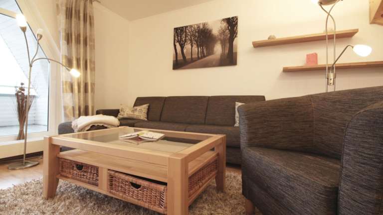 Die Ferienwohnung verfügt über zwei Schlafzimmer, ein Wohnzimmer, ein Badezimmer mit Dusche sowie eine gut ausgestattete Küche, die mit einem Kühlschrank und einem Geschirrspüler ausgestattet ist. Ein TV steht ebenfalls zur Verfügung. Handtücher und Bettwäsche sind vorhanden, müssen jedoch vor Ort gemietet werden. Alle Bereiche der Unterkunft sind Nichtraucherbereiche.