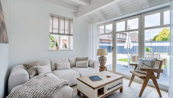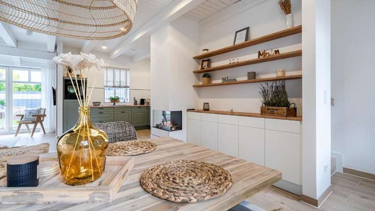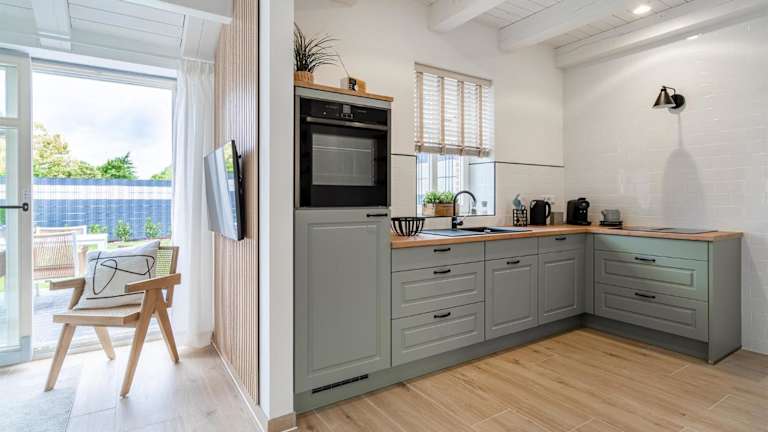 Das Ferienhaus umfasst zwei Schlafzimmer, ein Badezimmer, einen Essbereich sowie eine voll ausgestattete Küche. Zur Einrichtung gehören Bettwäsche, Handtücher und ein Flachbild-TV mit Satellitenkanälen. Ein Babybett ist auf Anfrage verfügbar.