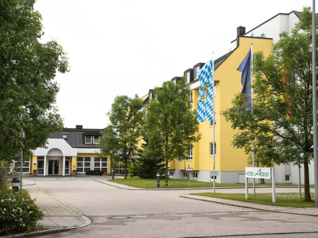 Ob als Geschäftsreisender oder Familie: Das Vier-Sterne-Hotel Alarun bietet Großstadt und grüne Natur. 104 großzügige, komfortable und klimatisierte Zimmer laden Sie zum Ausruhen ein. Im Nordflügel finden Sie außer Einzel- und Doppelzimmern auch Studios mit separatem Schlafraum und Kitchenettes. In den Bädern des Nordflügels erwarten Sie Dusch-Badewannen, im Südflügel großzügige, ebenerdig begehbare Duschen. Die gesamte Gartenetage des Südflügels ist Tagungen und Seminaren vorbehalten. Es stehen vier Tagungsräume mit eigenem Zugang zum Garten bereit. Eine eigene Cafeteria sowie verschiedene Steh- und Sitzgruppen im Pausenbereich bieten sowohl Raum zum Rückzug, als auch zur offenen Kommunikation. Schnelles W-LAN ist im ganzen Haus kostenfrei. Auf unseren Parkplätzen steht Ihr Pkw sicher und ebenfalls kostenfrei. Unser reichhaltiges Frühstücksbüffet bietet Ihnen alles, was Sie zum Start in einen gelungenen Morgen brauchen. Am Abend lädt unser Restaurant Freetz zum Schlemmen ein. Bei gutem Wetter erwartet Sie dort außerdem ein gemütlicher Biergarten. Einen spritzigen Absacker können Sie auch in unserer Hausbar nehmen. Sie ist 24 Stunden am Tag geöffnet. Hier können sie über Sky Sportereignisse live mitverfolgen. In unserem Wellnessbereich warten zwei mit modernster Technik ausgestattete Fitnessräume, außerdem eine finnische Sauna und ein Dampfbad auf Sie. Unser Haus liegt absolut ruhig und ist dennoch direkt ans Autobahnnetz und den öffentlichen Nahverkehr angebunden: Der S-Bahnhof ist wenige Gehminuten, der Autobahnzubringer 100 Meter entfernt. Mit der S-Bahn gelangen Sie in 25 Minuten direkt in die Münchner Innenstadt. Der Flughafen ist in knapp 15 Autominuten erreichbar. Direkt vom Haus aus können Sie ins Grüne joggen oder radeln; Räder stellen wir gegen Gebühr bereit. Eine mögliche Joggingroute führt direkt zum Hollerner See, dessen klares Wasser im Sommer herrliche Erfrischung bietet. Auch der Unterschleißheimer Badesee, an dessen Ufer eine Straußwirtschaft zur Brotzeit einlädt, ist ein wunderbarer Ort zum Entspannen.