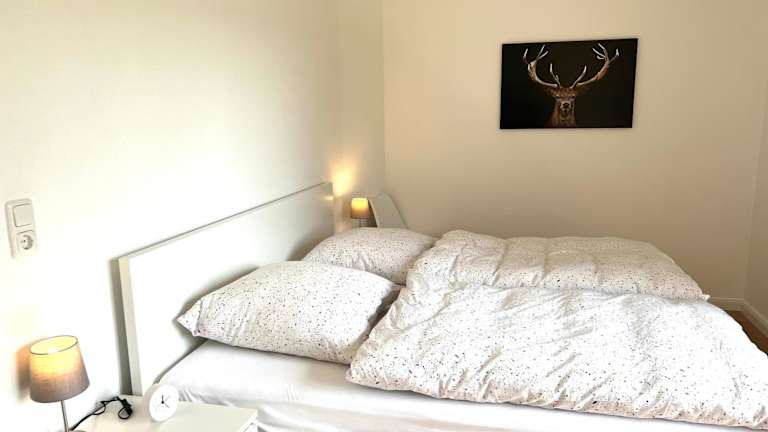 Die Ferienwohnung beinhaltet 2 Schlafzimmer, einen Flachbild-TV und eine voll ausgestattete Küche, die mit Kühlschrank, Geschirrspüler, Waschmaschine, Ofen und Mikrowelle ausgestattet ist. Handtücher und Bettwäsche sind ebenfalls vorhanden.