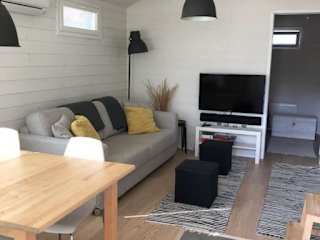 Das klimatisierte Chalet verfügt über eine gemütliche Atmosphäre und ist mit einem Schlafzimmer, einem Wohnzimmer, einer voll ausgestatteten Küche und einem Badezimmer ausgestattet. Die Küche bietet alle Annehmlichkeiten, die Sie für die Zubereitung Ihrer Mahlzeiten benötigen, einschließlich eines Kühlschranks und einer Kaffeemaschine. Das Badezimmer verfügt über eine Dusche und einen Haartrockner. Ein Flachbild-TV sorgt für Unterhaltung und Klimaanlage für angenehme Raumtemperaturen.