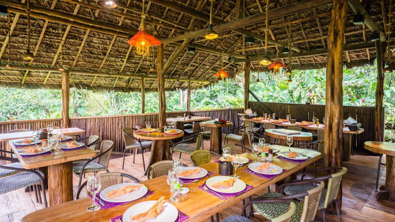 Beginnen Sie Ihren Tag mit einem köstlichen amerikanischen Frühstück, das jeden Morgen in der Hakuna Matata Lodge serviert wird. Im hoteleigenen Restaurant können Sie auch andere Mahlzeiten genießen und lokale Spezialitäten probieren. Die Bar bietet eine Auswahl an Getränken, die Sie auf der Terrasse oder im Garten genießen können.