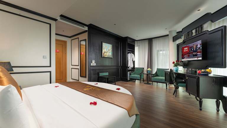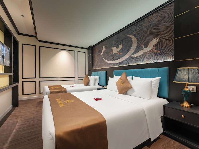 Die klimatisierten Zimmer im HALO HANOI HOTEL sind komfortabel eingerichtet und verfügen über Annehmlichkeiten wie einen Flachbild-Kabel-TV, einen Kühlschrank, einen Wasserkocher und kostenfreie Pflegeprodukte. Ein Schreibtisch steht Ihnen ebenfalls zur Verfügung. Jedes Zimmer verfügt über ein eigenes Bad mit Dusche, Haartrockner und Bettwäsche.
