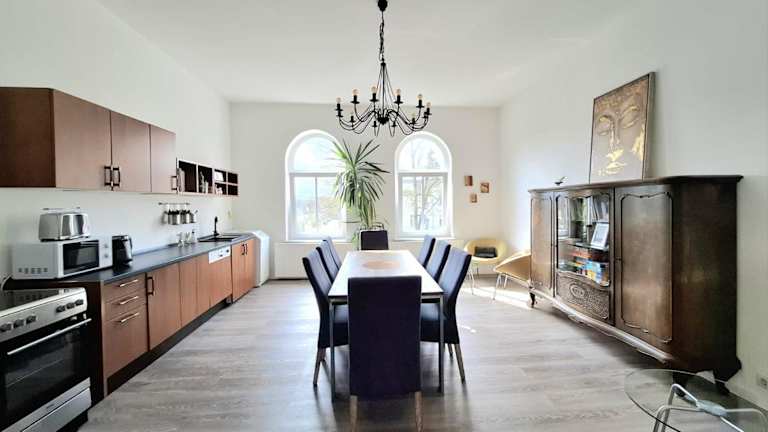 Haltestelle - Ferienwohnung ist eine Ferienwohnung in einem historischen Gebäude aus dem Jahr 1900. Die Unterkunft ist von einem privaten Gastgeber geführt und bietet eine Vielzahl von Annehmlichkeiten, darunter Grillmöglichkeiten und kostenloses WLAN.