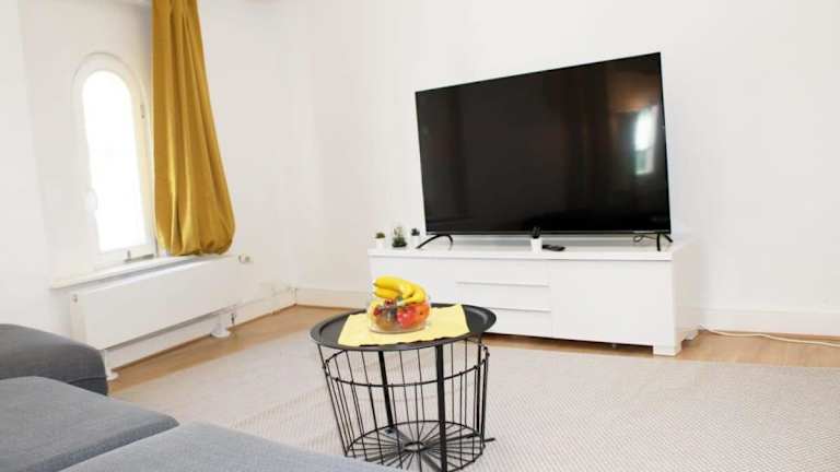 Die Ferienwohnung umfasst zwei Schlafzimmer, ein Wohnzimmer mit TV, eine voll ausgestattete Küche mit Kühlschrank und Geschirrspüler sowie ein Badezimmer mit Haartrockner. Handtücher und Bettwäsche werden bereitgestellt.