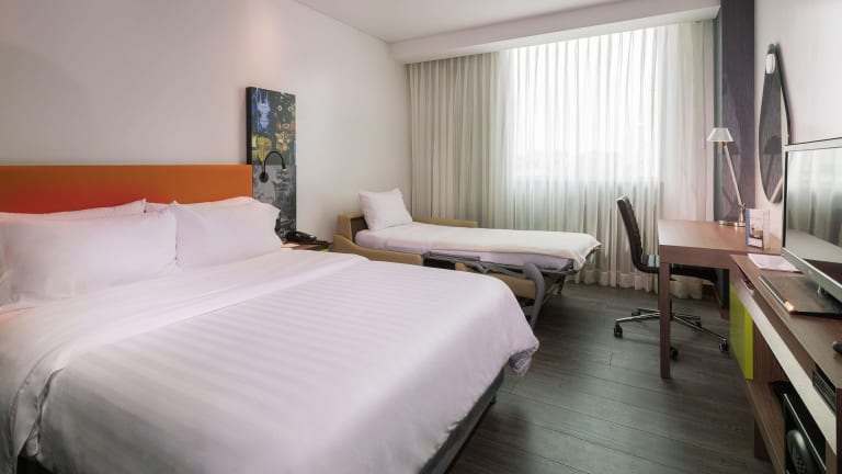 Das Hampton by Hilton Barranquilla ist ein stilvolles Hotel mit kostenfreiem WLAN und Fitnessmöglichkeiten in Barranquilla. Die Strände von Puerto Colombia sind nur 15 Autominuten entfernt und das Einkaufszentrum Buenavista erreichen Sie in nur 5 Minuten. Kostenfreie öffentliche Parkplätze stehen vor Ort zur Verfügung. Die klimatisierten Zimmer im Hampton by Hilton Barranquilla verfügen über einen Flachbild-Kabel-TV und eine Kaffeemaschine. Einige Zimmer bieten zudem geräumige Sitzecken mit Sofas. Gäste können an der Bar des Hotels Getränke genießen und rund um die Uhr Snacks im hoteleigenen Shop kaufen. Das Hotel verfügt auch über einen Whirlpool. Das Businesscenter bietet PCs mit Internetzugang und einen kostenlosen Druckservice. Die Mitarbeiter des Tourdesk geben Ihnen gerne Tipps zur Erkundung der Umgebung. Der Flughafen Ernesto Cortissoz liegt 13,6 km entfernt.