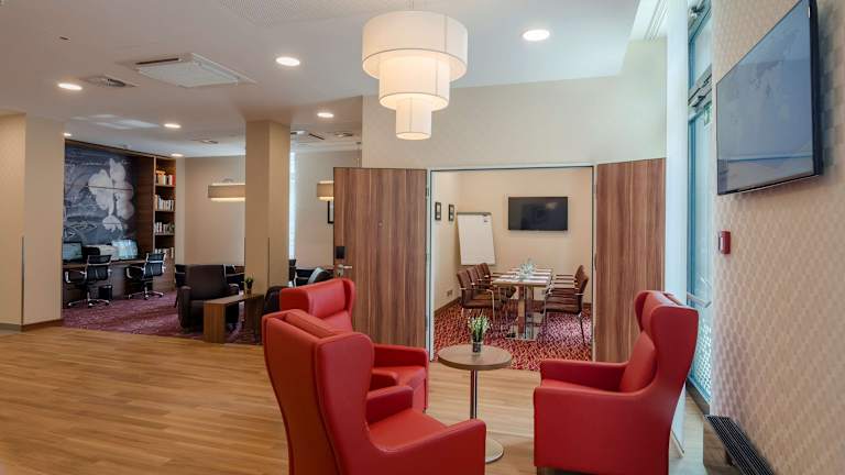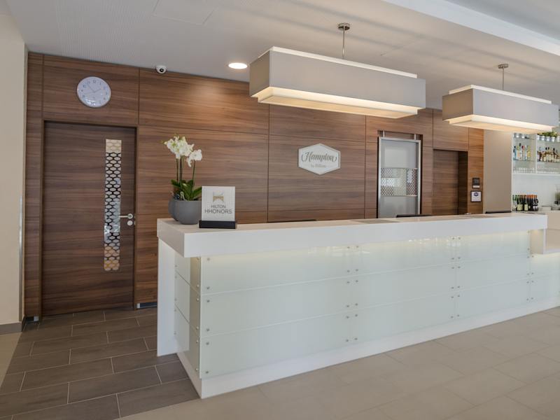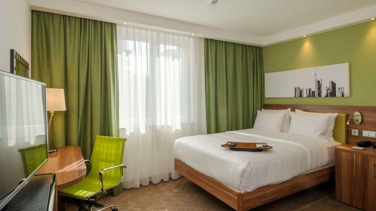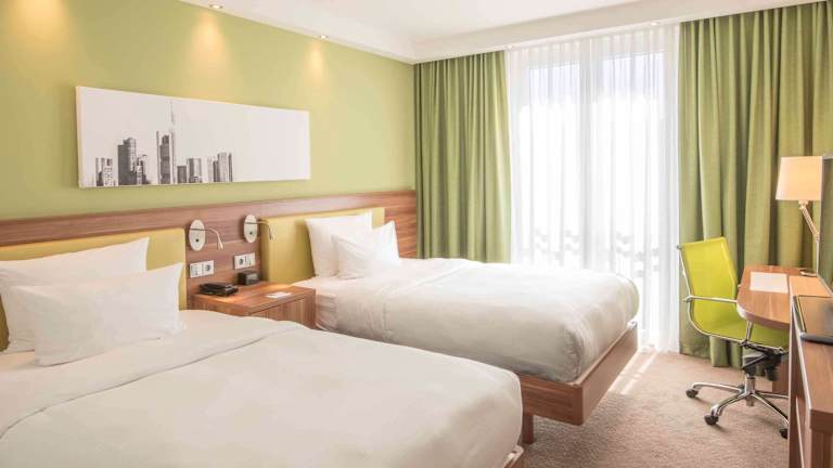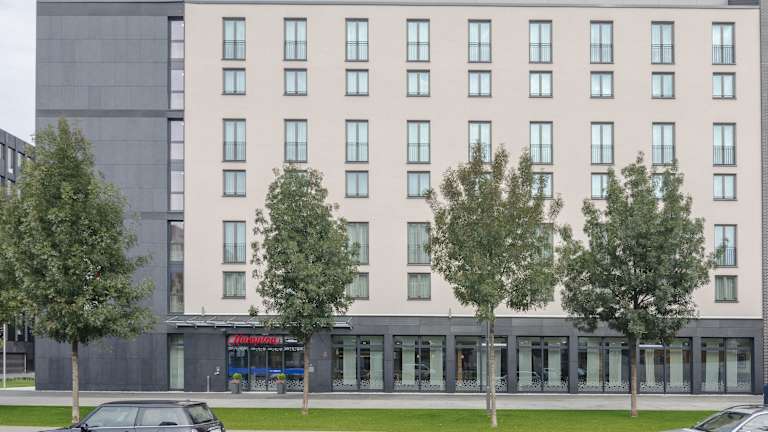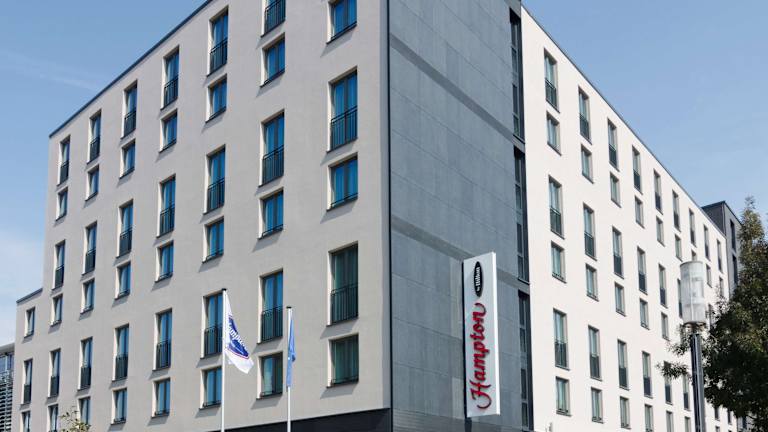 Hampton by Hilton Frankfurt City Centre Messe is situated directly at the eastern entrance to the Messe Frankfurt – the Frankfurt trade fair. It is within walking distance to restaurants, corporate offices and the Skyline Plaza shopping mall. Frankfurt International Airport is just 10 minutes away by train from Frankfurt (Main) Hauptbahnhof - which is just 7 minutes from the hotel. The city center and the financial district are also just a short stroll away. This Frankfurt hotel offers smart and modern guest rooms equipped with amenities including free WiFi, a flat-screen HDTV, an alarm clock/radio, an in-room coffee maker, a comfy queen-sized bed and a flexible, ergonomic work desk. Take advantage of useful services and amenities at this hotel in Frankfurt including a free 24-hour business center, a small gym and a casual dining area. In the evening, dine in the casual bar, which also serves a light snack menu. Additional dining options are just moments away, with typical Frankfurter cuisine and international restaurants on the doorstep.