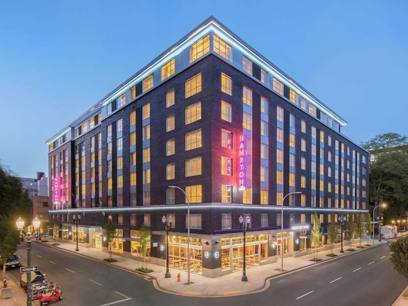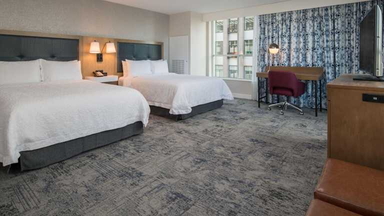 Das Hampton Inn And Suites By Hilton Portland-Pearl District bietet komfortable Zimmer mit modernen Annehmlichkeiten. Jedes Zimmer ist mit einem Kühlschrank, einem 42-Zoll-LCD-TV und kostenfreiem WLAN ausgestattet. Die Gäste haben Zugang zu einem großen Fitnesscenter mit verschiedenen Trainingsgeräten sowie einem Peloton-Fahrrad. Entspannen Sie im Innenpool oder auf der Dachterrasse des Hotels.