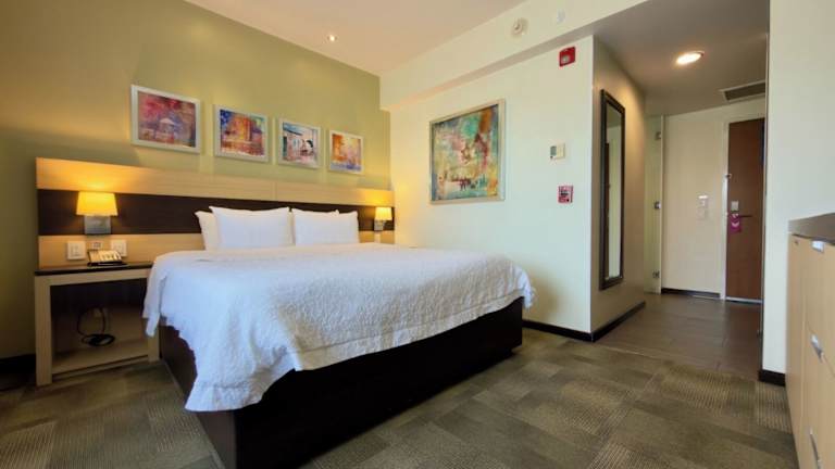 Das Hampton Inn by Hilton Silao-Aeropuerto in Silao, Mexiko bietet seinen Gästen einen angenehmen Aufenthalt mit einem Außenpool und kostenfreiem WLAN. Das Hotel verfügt über eine 24-Stunden-Rezeption und kostenlose Parkplätze. Die Zimmer sind komfortabel und gut ausgestattet, mit Kabel-TV, einem Kühlschrank und einem eigenen Bad. Das Hotel bietet auch einen Supermarkt und verschiedene Einrichtungen wie einen TV-Raum und eine Bibliothek. Das Restaurant serviert Frühstück und es gibt auch eine Bar. Gäste können den Außenpool, das Fitnessstudio und den Wellnessbereich mit Spa und Massageanwendungen nutzen.