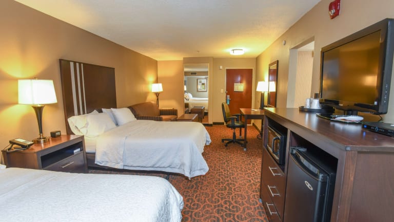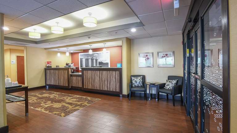 Das Hotel Hampton Inn Dry Ridge verfügt über insgesamt 62 Zimmer und erstreckt sich über 4 Etagen. Zu denleistungen zählen ein Aufzug sowie ein freundlicher Service an der Rezeption für alle Anliegen der Gäste. Die Unterkunft bietet behindertengerechte Annehmlichkeiten und einen unbewachten Parkplatz, der kostenlos zur Verfügung steht. Weitere Einrichtungen umfassen ein 24-Stunden-Sicherheitsdienst, medizinische Betreuung, einen Transferservice, Zimmerservice, Wäscheservice und eine Münzwäscherei. Ein Business-Center mit Faxgerät steht für geschäftliche Belange bereit.
