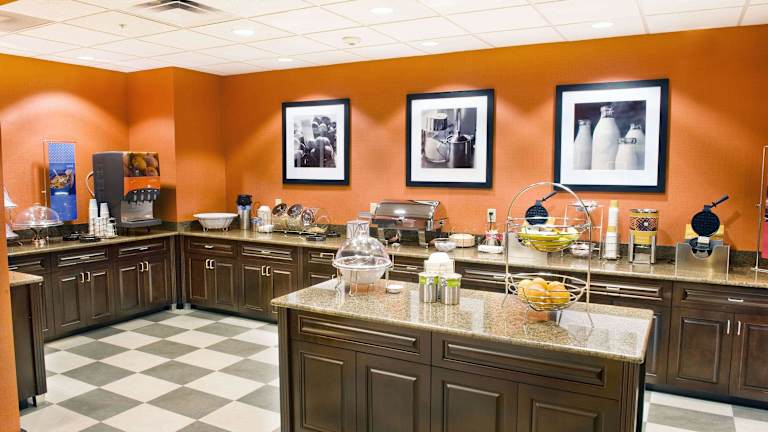 Das Hotel bietet ein amerikanisches Frühstück in Buffetform an. In der Nähe befinden sich auch Snacks und Getränke durch einen Getränke- und Snackautomaten.