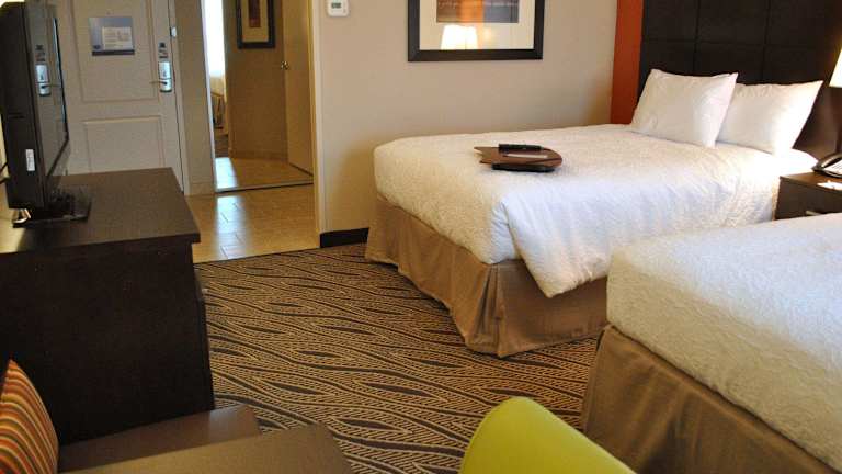 Die Zimmer der Unterkunft Hampton Inn Evansville Airport sind mit einem Flachbild-TV, einem Haartrockner und teilweise mit einer Küchenzeile, die einen Kühlschrank und eine Mikrowelle enthält, ausgestattet.