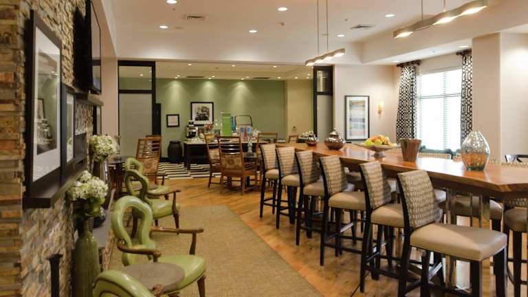 Im Hampton Inn erwartet Sie jeden Morgen ein Frühstücksbuffet mit einer Auswahl an Gebäck und heißem Kaffee. In der Umgebung des Hotels finden Sie auch eine Vielzahl von Restaurants und Imbissen, die Steaks, Grillgerichte und internationale Küche servieren.
