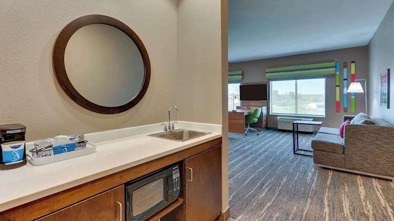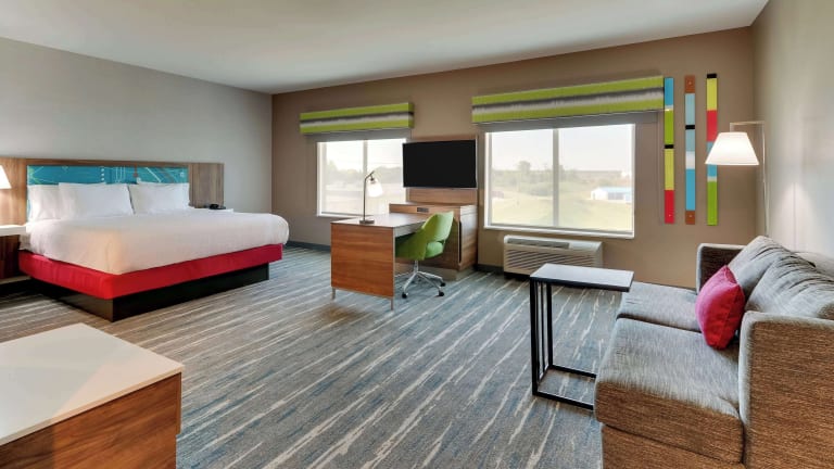 Die Wohneinheiten in der Unterkunft sind mit einem Sitzbereich und einem TV mit Kabelkanälen ausgestattet. Sie verfügen über Klimaanlage und einen Schreibtisch.