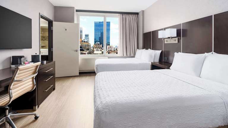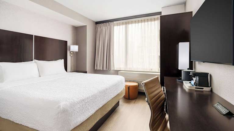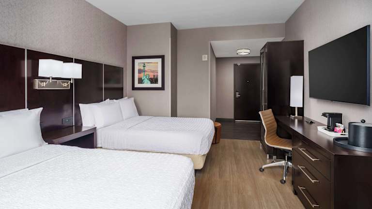 Die Zimmer im Hampton Inn Times Square Central sind modern und komfortabel eingerichtet. Jedes Zimmer verfügt über einen Flachbild-TV, eine Kaffeemaschine und ein Bügeleisen/-brett. Im eigenen Bad finden Sie einen Haartrockner und kostenlose Pflegeprodukte vor. Ein Schreibtisch und ein Laptop-Safe sind ebenfalls vorhanden. Die Zimmer bieten alle Annehmlichkeiten, die Sie für einen angenehmen Aufenthalt benötigen.
