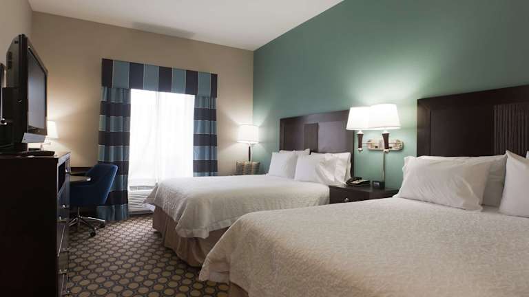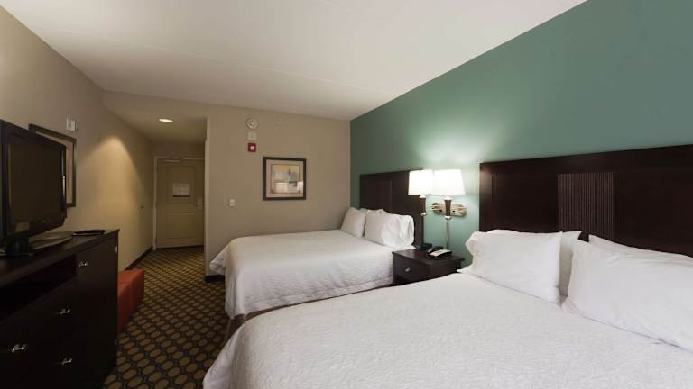 Die Zimmer im Hampton Inn North Brunswick sind geräumig und gut ausgestattet. Jedes Zimmer verfügt über einen Flachbild-LCD-TV, eine Kaffeemaschine, eine Mikrowelle und einen kleinen Kühlschrank. Es gibt auch einen Schreibtisch, an dem Sie bequem arbeiten können. Die Badezimmer sind sauber und verfügen über eine Dusche, eine Badewanne und einen Haartrockner. Das Hotel bietet auch rollstuhlgerechte Zimmer für Gäste mit eingeschränkter Mobilität.