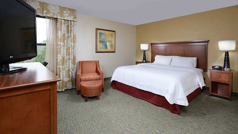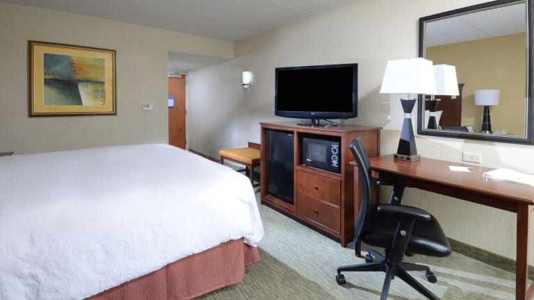 Das Hampton Inn Raleigh/Durham Airport verfügt über insgesamt 99 Zimmer auf 4 Etagen und bietet eine Reihe von Serviceleistungen. Es stehen Einrichtungen wie ein Aufzug, ein TV-Raum und eine Gepäckaufbewahrung zur Verfügung. Ein freundliches Rezeptionsteam ist rund um die Uhr erreichbar. Die Unterkunft bietet barrierefreie, rollstuhlgerechte Einrichtungen sowie einen Outdoor-Pool mit kostenfreien Liegen. Es gibt zudem Schulungsräume und ein Business-Center.